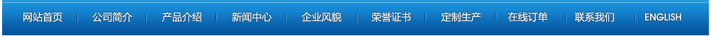 網(wǎng)站首頁(yè) | 公司簡(jiǎn)介 | 產(chǎn)品介紹 | 新聞中心 | 企業(yè)風(fēng)貌 | 榮譽(yù)證書(shū) | 定制產(chǎn)品 | 在線訂單 | 聯(lián)系我們 | ENGLISH 【后臺(tái)管理】